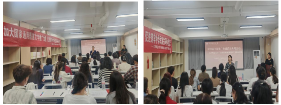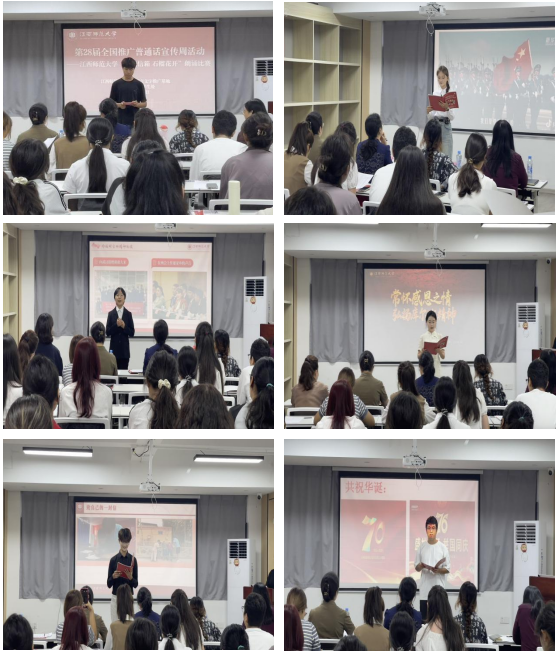 在第28届全国推广普通话宣传周期间,为深入贯彻落实习近平总书记关于铸牢中华民族共同体意识的重要论述,9月24日下午,国家语言文字推广基地(江西师范大学)联合学生处,在学校一站式学生社区红色讲堂成功举办“石榴信箱 石榴花开”朗诵比赛。活动旨在通过朗诵艺术推广国家通用语言文字,深化民族团结进步教育,增强各民族学生的交流与认同。教务处学生学习指导中心主任金绍梅、党委学工部(学生处)副部长袁蓉、江西省普通话水平测试员匡蓉蓉担任评委。