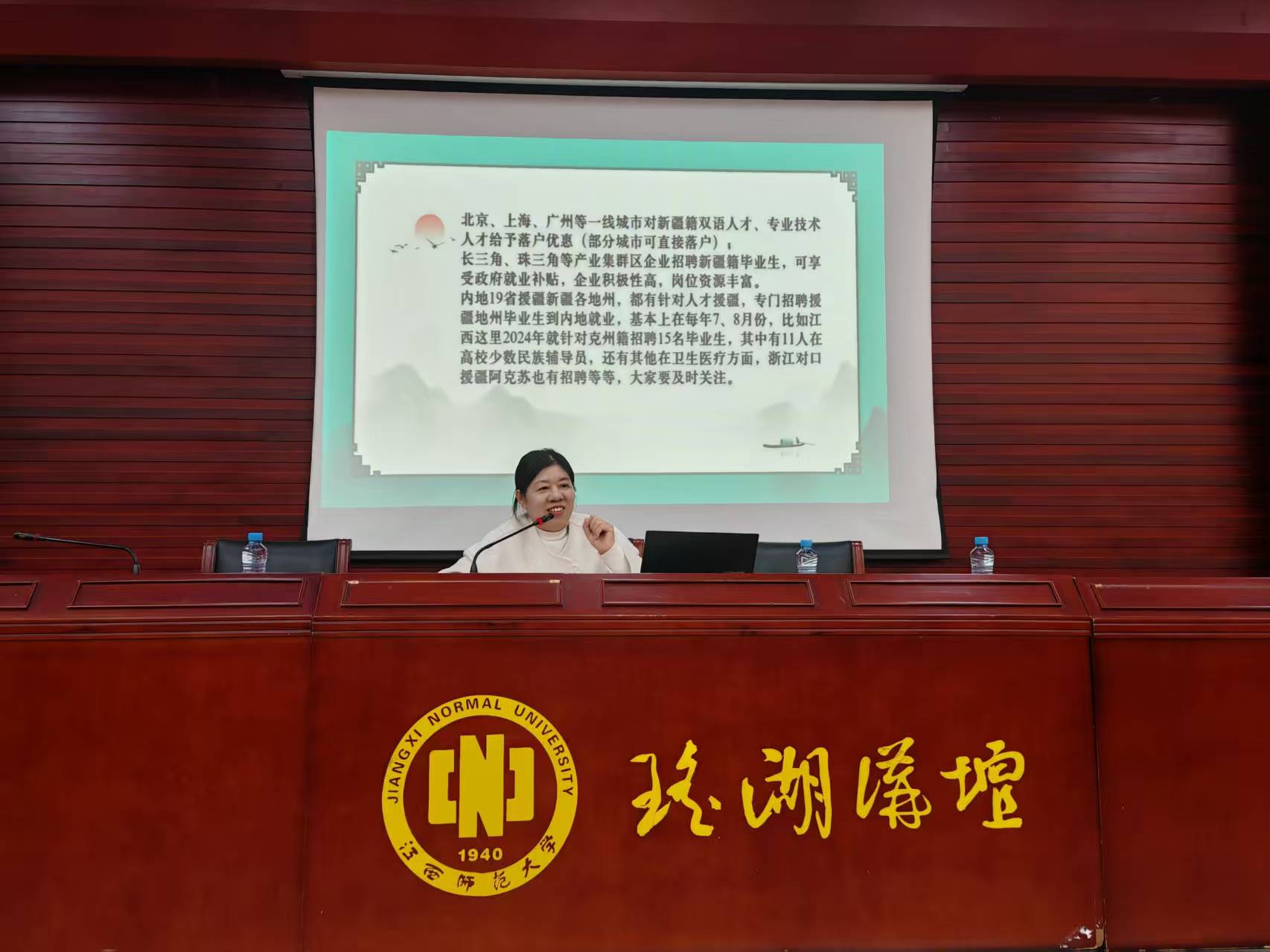 为切实做好少数民族学生的就业指导与服务工作,11月25日下午,学校邀请驻江西教育协调小组组员、副教授方菊英来校开展就业专题讲座,驻江西教育协调小组组长王安防出席活动。进百余名少数民族学生聆听讲座。